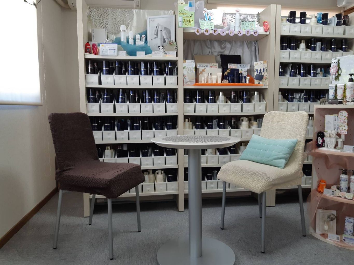 友達の家に遊びに行く感覚で気軽に来れるサロンです。肌悩みやメイクアドバイスはもちろん悩み事の相談も。お客様が笑顔でまた来るね!次回も楽しみ♪そう思って頂けるサロンです。